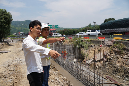 圖為工作人員到溫嶺西收費(fèi)所車(chē)道拓寬現(xiàn)場(chǎng)檢查 烈日炎炎,在黃土嶺隧道現(xiàn)場(chǎng),工程養(yǎng)護(hù)部人員拿著卷尺仔細(xì)測(cè)量,做好數(shù)據(jù)記錄,并查看分析路段中一些破損的部位,一個(gè)來(lái)回下來(lái)汗已濕透衣背。隨后,一行人趕往臺(tái)州南收費(fèi)所鋼結(jié)構(gòu)施工現(xiàn)場(chǎng),查看施工進(jìn)展情況,要求施工單位緊盯合同工期,加強(qiáng)施工管理,同時(shí)一再?gòu)?qiáng)調(diào)施工中要做好防暑降溫工作,避開(kāi)高溫時(shí)間段施工,注重高溫作業(yè)安全。 近期,工程養(yǎng)護(hù)部現(xiàn)場(chǎng)管理人員時(shí)常頭頂烈日奔赴各施工現(xiàn)場(chǎng)監(jiān)工,查看路段護(hù)坡、路肩墻、防塵網(wǎng)施工情況,定時(shí)巡查溫嶺西車(chē)道拓寬工程進(jìn)展,督促各收費(fèi)所裝修工程早日完工,沿線查看黃土嶺山體排水改造工程施工成果等。在查看施工進(jìn)展的同時(shí),他們還在現(xiàn)場(chǎng)宣傳高溫酷暑安全防范的重要性,嚴(yán)抓工程質(zhì)量與安全。 李夢(mèng)君