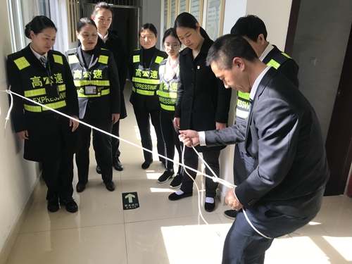 圖為演練現(xiàn)場 隨著所長孫明偉提問式的開場白,近日,臨海南收費所以班組為單位,分四天集中開展全員逃生繩演練活動。全所員工積極參與、親身體驗,活動達(dá)到預(yù)期效果。 整個演練過程中,培訓(xùn)人員詳細(xì)講解了打繩結(jié)的方法與注意要點,現(xiàn)場氣氛踴躍。通過開展此次活動,本所員工不僅掌握了逃生繩的使用方法,提高了高層逃生自救能力,而且進(jìn)一步提高了面對突發(fā)火情的應(yīng)對能力,增強(qiáng)了“防火防災(zāi)”的安全意識。 陳瑩