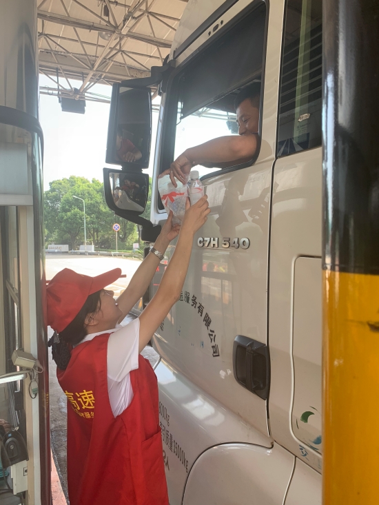 圖為志愿者在準備防暑物品 “師傅,辛苦啦!這袋子里有礦泉水、風油精、人丹一些防暑物品,您拿好,路上帶著以備不時之需!” “沒想到,你們收費站還有這個服務,這次我要出趟遠門,說不定路上還真能用的上,謝謝呀!”一位接過禮品袋的老師傅連聲道謝。