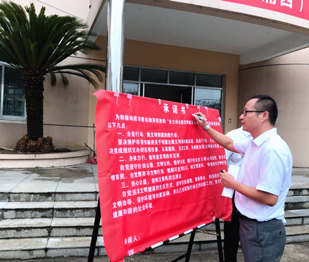 圖為公司副總經(jīng)理章海峰在承諾書上簽名 章海峰要求大家充分認(rèn)識創(chuàng)建全國文明城市的重要性,立足崗位,樹窗口形象,展行業(yè)新風(fēng),用自己的實(shí)際行動支持創(chuàng)建工作。此次創(chuàng)建工作,時間緊、任務(wù)重,需要全體人員迅速行動起來,從我做起,從細(xì)節(jié)做起,從點(diǎn)滴做起,逐層壓實(shí)責(zé)任,確保萬無一失。文明城市創(chuàng)建工作不僅僅是政府的事,更是全體市民的事,也直接體現(xiàn)了一個城市的幸福指數(shù),大家要以“一流的城市環(huán)境、一流的公共秩序,一流的服務(wù)水平、一流的精神面貌”迎接測評。