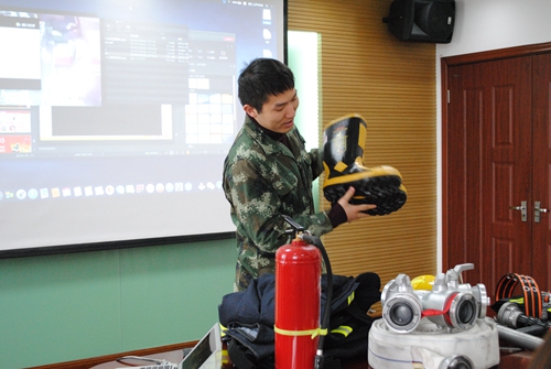 圖為消防員裝備介紹 此次專題講座進(jìn)一步提高了大家對消防安全的重視,加強(qiáng)了防范意識,注意用火、用電安全,防止事故的發(fā)生,也深刻認(rèn)識到了“生命至上,安全第一”的重要性,真正做到“防患于未然”。 楊雅芬