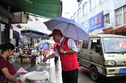 圖為志愿者隊合影 由部分非當班黨員,青年團員組成的第一支志愿小分隊,趕赴沙埠鎮,與沙埠鎮鎮政府一起開展創建全國文明城市的宣傳活動。小分隊統一身著印有的 “臺州高速臺州南收費所志愿服務隊”的紅色馬甲,在沙埠鎮有關同志的陪同之下,冒雨沿街分發創建全國文明城市的宣傳資料,并逐一耐心講解創建工作的有關注意事項。 沙埠鎮沿街衛生秩序較好,但局部角落還是存在一定的臟、亂問題,通過鎮工作人員和志愿者們的勸導,群眾們紛紛表示要響應創建全國文明城市的號召,從自身做起,為創建出一份力。 王樹聲