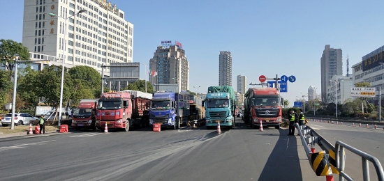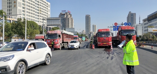 圖為所班子成員帶頭指揮交通 早上8點11分,接到監(jiān)控中心電話:入口開通,開足兩個人工車道。當時正值新收費模式開通前對稱重超限車輛勸返工作的開始。經(jīng)過幾個小時封道,此時的入口車流已經(jīng)一望無際,如果碰到超限車輛,勸返更是難上加難。 在困難中想對策,所領(lǐng)導班子成員提出“輪流式放行”:入口的車輛分別是從橋上和橋下過來,分為4個車道,每個車道輪流放行5分鐘,這樣井然有序,不容易造成擁擠和交通事故,并且可以快速放行。每個車道前都擺放了一個小紅帽,專人看守。其他人員分別在入口指揮,藍牌貨車和未安裝ETC的車輛從大小客車車道通行,大貨車從混合車道通行,裝有ETC的客車和集裝箱走ETC專用通道。大家不斷穿梭在車道、廣場之間,向司機一遍遍耐心解釋,指揮每一輛車順利通行。1名孕婦行動不便,被分在監(jiān)控室接聽電話,查詢?nèi)肟跓o信息的車道。所有人一身汗,忙得顧不上喝一口水,臨近飯點也沒有人主動去吃飯,大家都頂住壓力,從黎明到黃昏一心想著快速準確高效放行。