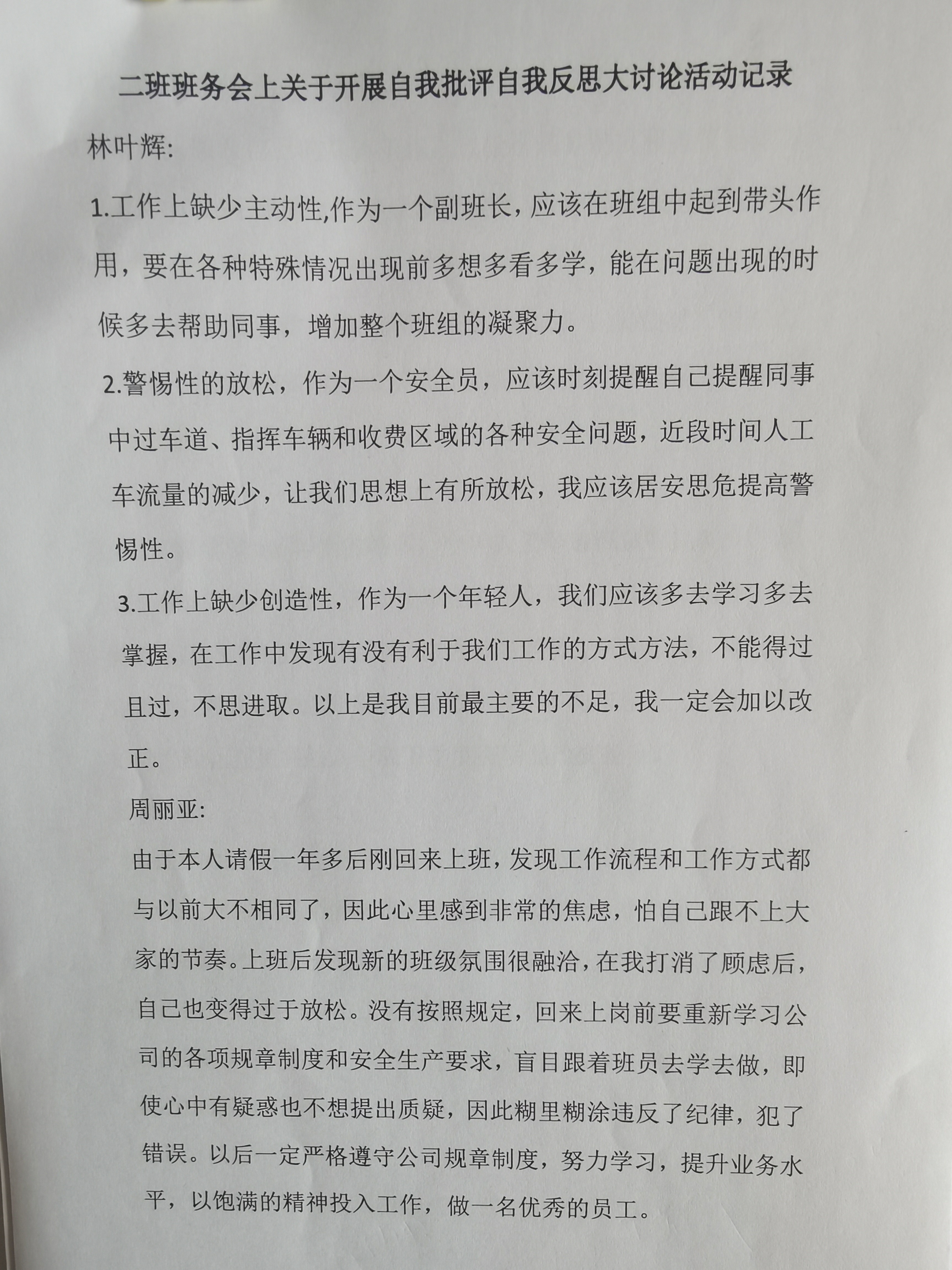 近日,溫嶺西收費(fèi)所以班組為單位,組織員工開展自我批評、自我反思大討論活動(dòng)。