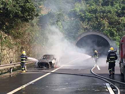 小轎車隧道口自燃起火 |