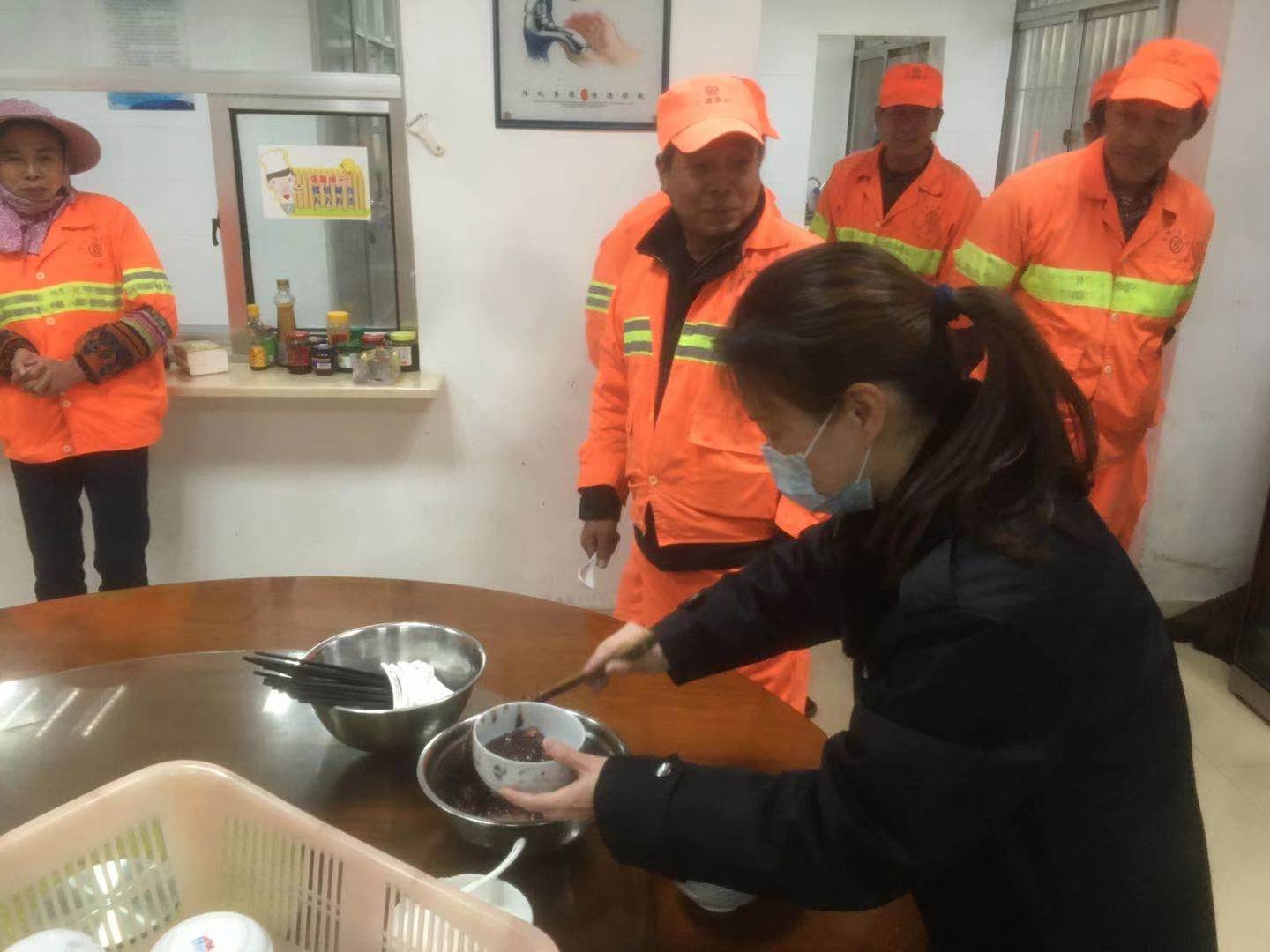 (圖為隧道所邀請(qǐng)養(yǎng)護(hù)人員到所食堂喝粥)