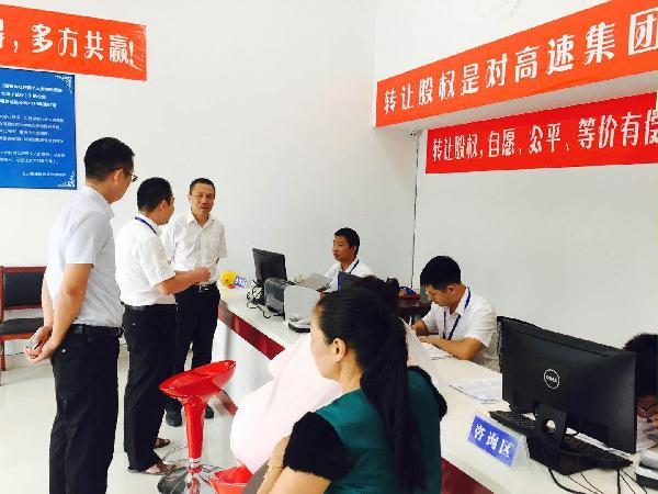 圖為集團副董事長、總經理張建平在天臺收購點詳細詢問收購工作具體開展情況 張建平向各地方政府前期對公司股權收購工作的支持表示感謝,他介紹了當地臺州高速股權收購進展情況,同時闡明收購工作中存在的困難,需要地方政府繼續對我們的工作給予支持和幫助。三地政府都表示一定會全力支持這項工作。仙居縣分管公司股權收購的常務副縣長說,“放心吧,我們一起想辦法,先從持股較多的法人股入手,再化大力氣做小股東工作,一定會圓滿完成任務。” 張建平一行先后來到三地股權收購點,向收購一線的工作人員表示親切的問候。張建平對大家的工作給予肯定,感謝所有人勤勤懇懇,無私付出,并希望大家繼續努力,共同實現目標。工作人員詳細介紹了日常具體工作方法,他們緊跟公司股權收購總體布局,并結合當地特殊情況,因地制宜,有序靈活地開展股權收購工作。