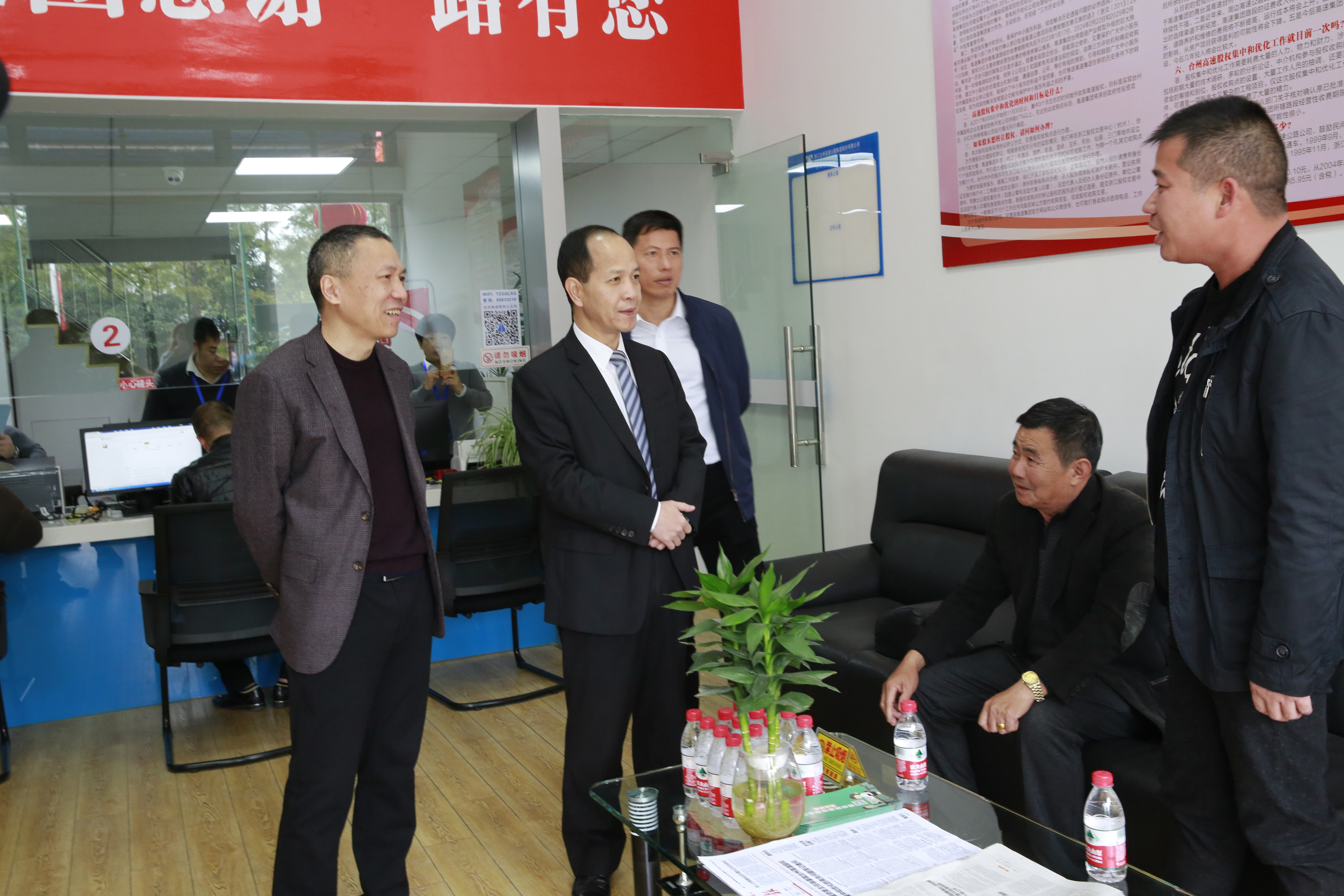 11月28日上午,副市長(zhǎng)張加波到臺(tái)州高速股權(quán)椒江收購(gòu)點(diǎn)調(diào)研股權(quán)集中收購(gòu)工作。臺(tái)州高速集團(tuán)領(lǐng)導(dǎo)班子成員、椒江區(qū)常務(wù)副區(qū)長(zhǎng)王智承等陪同。