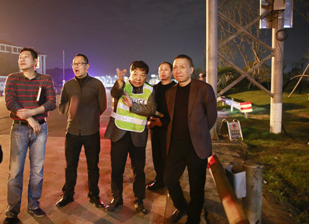 圖為集團總經理張建平檢查臺州收費所 協調會后已近晚上,張建平又帶領公司副總經理章海峰等人員來到臺州收費所,先后查看了員工宿舍、食堂和外廣場,要求盡快恢復臺州站名燈、車道燈和外廣場路燈照明,并加快推進臺州所車道拓寬改造工作。 張琛