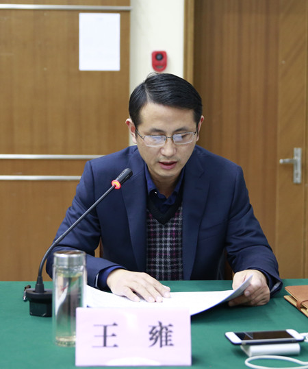 圖為公司董事會秘書王雍宣讀相關議案