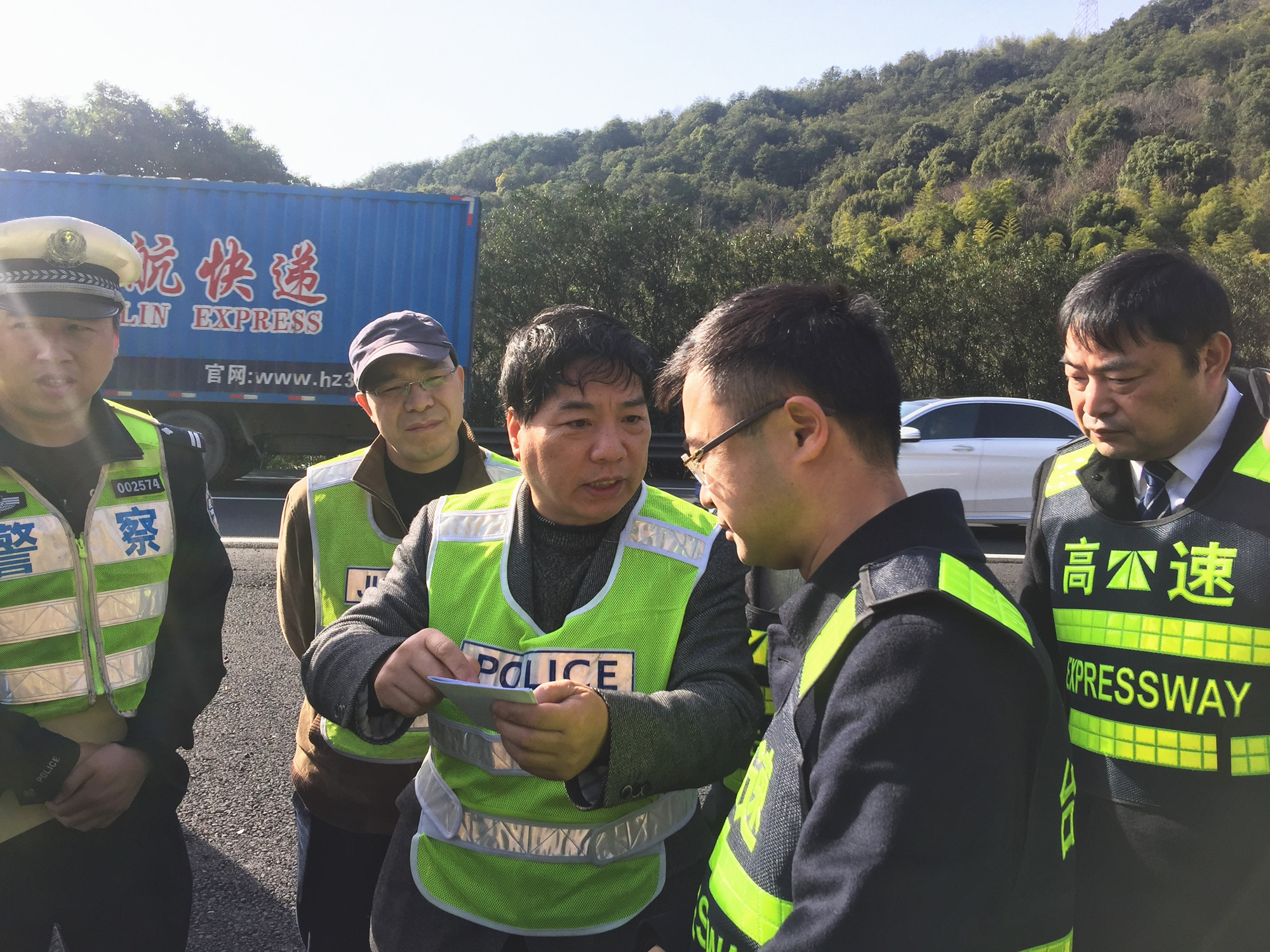 圖為檢查組一行在黃土嶺隧道所檢查消防安全臺賬 在黃土嶺隧道所,檢查組不僅檢查了隧道所安全臺賬和執(zhí)勤記錄,還對食堂安全進行檢查,發(fā)現(xiàn)食堂存在食物留樣盒無日期標識的問題。隨后,檢查組實地進入黃土嶺隧道,發(fā)現(xiàn)整條隧道明亮整潔,隧道內(nèi)火災(zāi)報警器、消防箱、緊急電話、導(dǎo)向標志等設(shè)備設(shè)施都完好無損,消防箱內(nèi)的定期檢查表格還細致地用塑料袋裝起來,有效地避免了污損破壞,值得推廣。只是汽通門無法遠程控制,需要加緊整改。