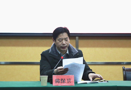 圖為集團副總經理陳保衛傳達會議精神現場