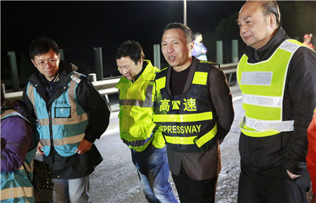 凌晨一點,張建平向工作人員表示了感謝,并叮囑他們一定要注意安全防護和做好保暖工作。此前,張建平還走訪了施救中心、維養中心、臺州收費所、黃土嶺隧道所等一線單位,他對站所整潔度、人員到崗情況表示了肯定。 張波