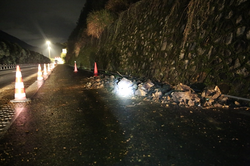 今天零點(diǎn)20分,黃土嶺隊(duì)道所接到報(bào)警,甬臺(tái)溫高速溫向黃土嶺隧道入口附近發(fā)現(xiàn)碎石散落。連日陰雨,路面濕滑,加上深夜貨車(chē)居多,落石情況不明,更易發(fā)生交通事故,存在嚴(yán)重安全隱患。
