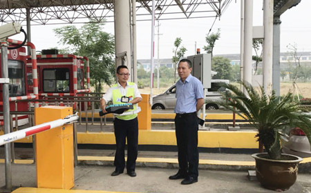 圖為集團(tuán)副董事長、總經(jīng)理張建平在溫嶺西收費(fèi)所檢查