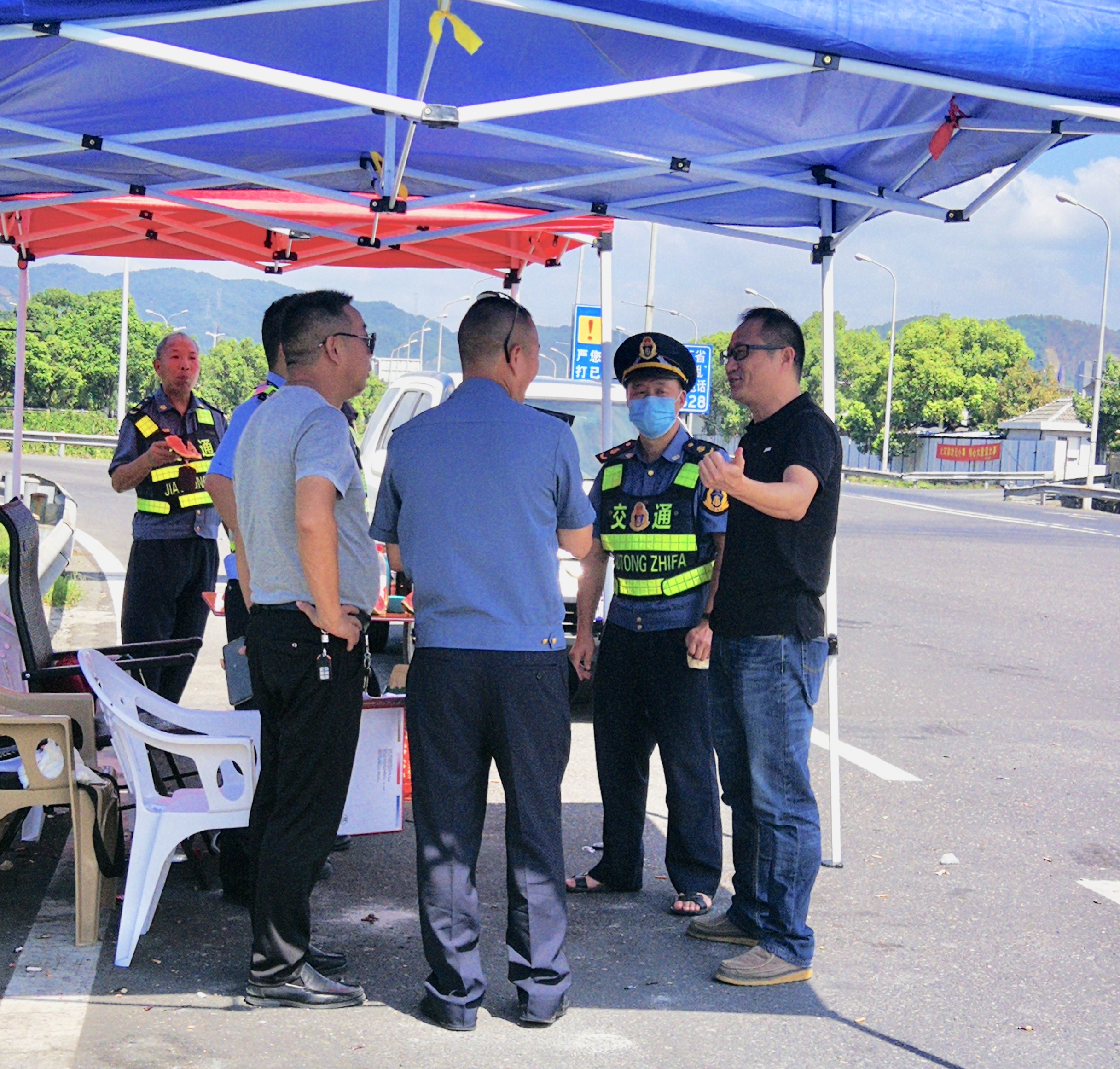 圖為章海峰在路政治超點了解情況