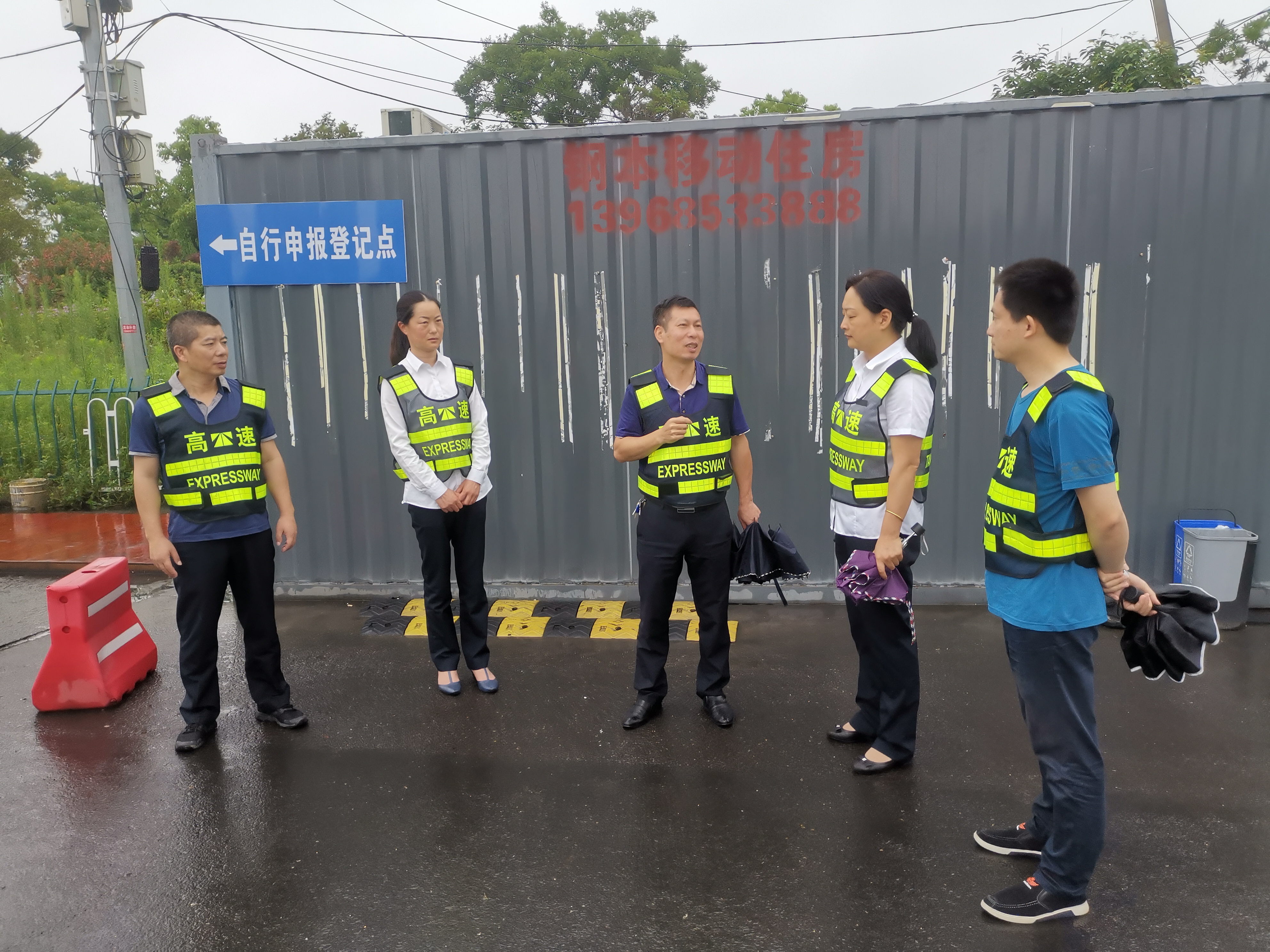 集團(tuán)總工程師江輝到一線開展汛期安全隱患及 收費(fèi)站入口管控檢查 6月8日上午,集團(tuán)總工程師江輝帶領(lǐng)工程養(yǎng)護(hù)部、征費(fèi)管理部、安保部、養(yǎng)護(hù)公司等人員,冒雨開展汛期橋隧邊坡安全隱患排查及收費(fèi)站入口管控檢查。