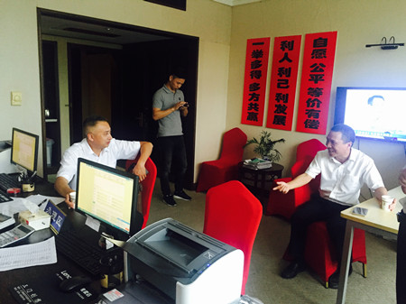 圖為集團(tuán)副董事長、總經(jīng)理張建平在天臺收購點(diǎn)詳細(xì)詢問收購工作具體開展情況 張建平向各地方政府前期對公司股權(quán)收購工作的支持表示感謝,他介紹了當(dāng)?shù)嘏_州高速股權(quán)收購進(jìn)展情況,同時闡明收購工作中存在的困難,需要地方政府繼續(xù)對我們的工作給予支持和幫助。三地政府都表示一定會全力支持這項(xiàng)工作。仙居縣分管公司股權(quán)收購的常務(wù)副縣長說,“放心吧,我們一起想辦法,先從持股較多的法人股入手,再化大力氣做小股東工作,一定會圓滿完成任務(wù)。” 張建平一行先后來到三地股權(quán)收購點(diǎn),向收購一線的工作人員表示親切的問候。張建平對大家的工作給予肯定,感謝所有人勤勤懇懇,無私付出,并希望大家繼續(xù)努力,共同實(shí)現(xiàn)目標(biāo)。工作人員詳細(xì)介紹了日常具體工作方法,他們緊跟公司股權(quán)收購總體布局,并結(jié)合當(dāng)?shù)靥厥馇闆r,因地制宜,有序靈活地開展股權(quán)收購工作。