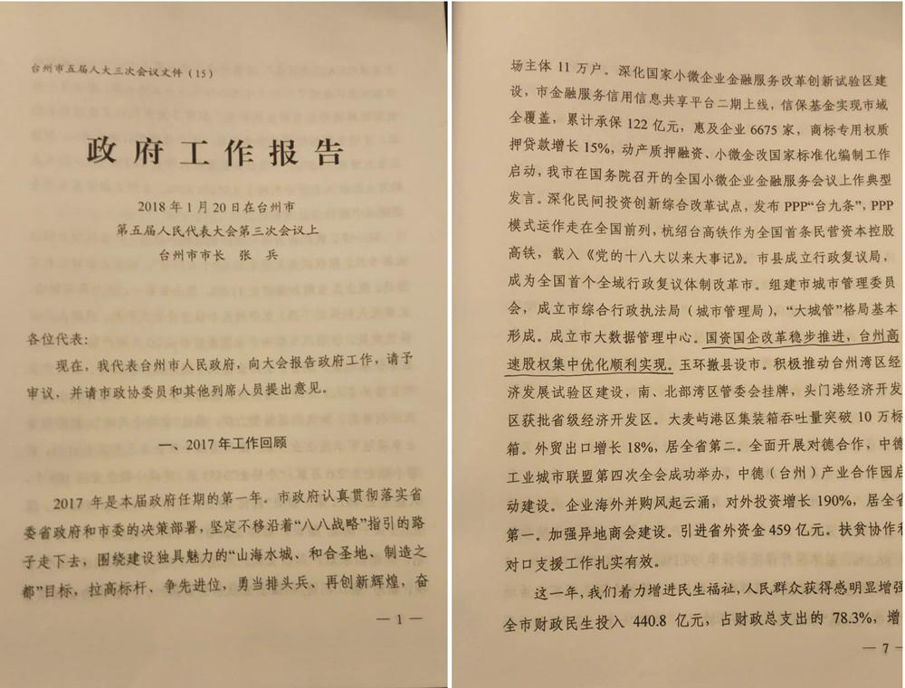 臺州高速股權集中優化寫進《政府工作報告》 |