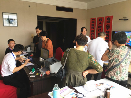 圖為三門收購點現場 這個清風拂柳的秋日,臺州高速股權三門收購點,三門股東回首往事,感慨萬千:“20年了,往事歷歷,恍如昨日。” 這位93年在三門縣高枧鄉政府工作的股東,當年作為高枧鄉黨委班子成員帶頭買了2000股,現在轉讓能拿回將近16000元。這次約了當年一起工作的同僚,將近20個人,一起過來辦理轉讓手續。