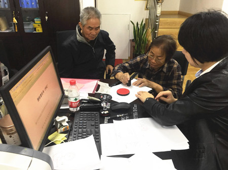 圖為椒江收購點現(xiàn)場 不巧的是,剛好收購點的股東特別多,輪到老兩口辦理得等待些時間,正好他們可以坐著仔細看看收購點的各類宣傳資料,等待中友好而耐心。 當(dāng)問及王阿姨是哪年購買臺州高速股權(quán)的,她邊說邊小心地拿出一張一張發(fā)黃的原始資料,“可早啦,94年買的呢,估計你那時都還沒上學(xué)呢。”原來她是替臺州市椒江星明實業(yè)總公司辦理法人股轉(zhuǎn)讓的。作為工作多年的財務(wù)人員,她對待每個辦理環(huán)節(jié)都甚是仔細。架著一副老花眼鏡的她,坐在工作人員的身旁,耐心地問清轉(zhuǎn)讓疑問,逐字地看著股權(quán)轉(zhuǎn)讓協(xié)議書,認(rèn)真地填好股權(quán)轉(zhuǎn)讓款單,不管是簽字還是蓋章都不慌不忙。 “年輕人,你們可也得把資料看看仔細,如果出差錯讓我再來,那可得你們準(zhǔn)備好出場費請我來哦。”王阿姨開著玩笑對工作人員說道。 陳林偉