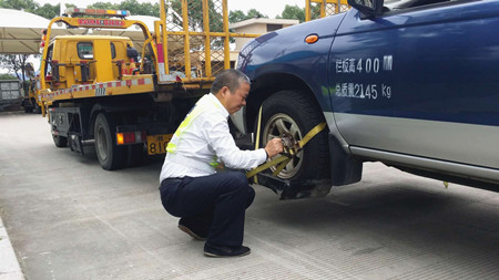 圖為工作人員參加清障車托舉輪胎拖曳比賽 早在節(jié)前,施救中心就未雨綢繆,全面檢查中心六輛清障車,主動(dòng)聯(lián)系廠方并要求派專員上門服務(wù)。其中對清障車輛的液壓系統(tǒng)進(jìn)行了檢查維護(hù),添加了液壓油,更換了漏的液壓泵,修理了滲油的油缸和油管接頭,對啟動(dòng)困難的清障車輛更換了電瓶和馬達(dá),對水溫過高的發(fā)動(dòng)機(jī)更換了電子風(fēng)扇,并對水箱進(jìn)行清洗,確保節(jié)日運(yùn)行性能的良好,杜絕了一切安全隱患。 今年國慶、中秋雙節(jié)合并使得假期更長,并且黨的十九大也在10月份召開。為此,施救中心高度重視,不僅全面檢查清障車輛,而且召集全體人員廣泛聽取應(yīng)急應(yīng)對意見,強(qiáng)調(diào)要頂住壓力,克服困難,團(tuán)結(jié)一心,打贏這一次艱苦的攻堅(jiān)戰(zhàn)。中心要求管理人員加強(qiáng)駐勤值班,及時(shí)掌握路況信息。一線人員不請假,不調(diào)休,加班加點(diǎn)隨時(shí)待命,聽候指揮,同時(shí)采取就近用餐、提前布控等措施,為保暢道路做好萬全準(zhǔn)備。