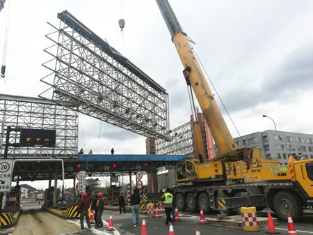 因拆除作業涉及車道臨時封閉,又不能影響進出高速車輛的通行,如何兼顧施工和萬千過往人民的安全,楊金梁的心里得有一把清楚的標尺。11月22日,天還未亮,他就從椒江急急地趕往臺州收費站拆除現場。6點始,大噸位的吊機已放置在指定位置,施工人員安全帽、安全繩,收費站內外廣場引導員,高速主線封道預警車等是否都已到位,楊金梁逐一迅速檢查,絲毫不敢遺漏任一安全環節。