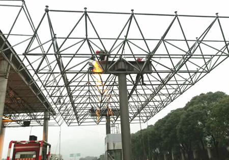 “起吊”,隨著現(xiàn)場施工管理人員的一聲令下,兩臺(tái)吊機(jī)吊著鋼結(jié)構(gòu)網(wǎng)架緩緩升起。“往左一點(diǎn),慢一點(diǎn)”經(jīng)過近十分鐘的努力,在施工現(xiàn)場管理人員的準(zhǔn)確指揮下,吊機(jī)駕駛員輕輕地把鋼結(jié)構(gòu)網(wǎng)架準(zhǔn)確無誤地放在預(yù)定支架上,溫嶺西收費(fèi)車道鋼結(jié)構(gòu)網(wǎng)架成功完成吊裝。接下來施工人員陸續(xù)在網(wǎng)架上鋪設(shè)面板,安裝標(biāo)志牌、照明、監(jiān)控等設(shè)備,并對(duì)崗?fù)C(jī)電進(jìn)行調(diào)試。