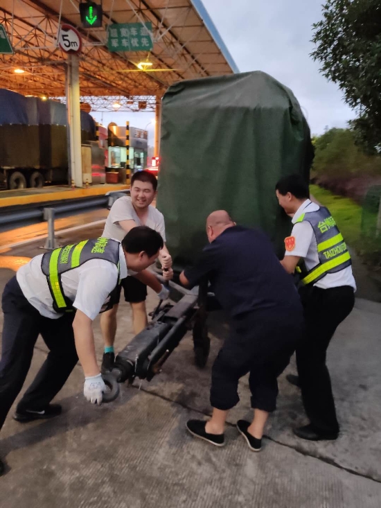 因故障涉及外網(wǎng)高壓供配電,維養(yǎng)中心緊急啟動(dòng)應(yīng)急預(yù)案,一邊聯(lián)系黃巖供電部門將10KV高壓進(jìn)線斷開,以確保搶修人員人身安全,一邊求助施救中心將停在臺(tái)州所的移動(dòng)發(fā)電機(jī)拉至臺(tái)州南收費(fèi)所。但由于該站站房轉(zhuǎn)角偏小,拖車無(wú)法進(jìn)入,大家便一起合力將重達(dá)十幾噸發(fā)電機(jī)手推至配電房外側(cè),以備不時(shí)之需。