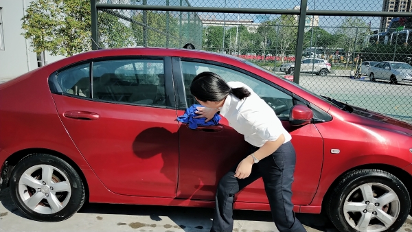 溫嶺西支部書記周超帶領(lǐng)黨員服務(wù)群眾 當天上午,活動一開始,前來洗車的車輛絡(luò)繹不絕。在支部書記周超的帶領(lǐng)下,五名黨員便開始分工合作。兩名男同志負責沖水、上泡沫、擦洗、再沖水,兩名女同志負責擦干和吸塵器清掃內(nèi)室,還有一名男同志負責開車挪車,需要清洗的車輛一輛接著一輛,黨員同志們顧不得擦干身上的被水濺濕了的衣服,忙得不亦樂乎。看著被洗得一塵不染的車,大家都不約而同地會心一笑。