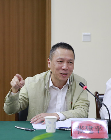 圖為集團黨委副書記、副董事長、總經理張建平介紹集團相關情況
