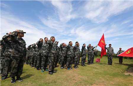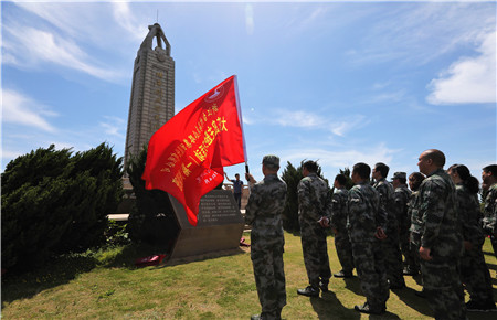 圖為黨員參觀大陳島墾荒紀念館 “讓我們重溫入黨誓詞,牢記黨員使命。”當鮮紅的黨旗在墾荒紀念碑下鋪開的時候,大家的思緒拉回現(xiàn)實。激情燃燒的歲月是歷史,從歷史中汲取力量,不忘初心,弘揚和傳承艱苦創(chuàng)業(yè)精神,鍥而不舍地克服集團發(fā)展中的難關難題,才是此行活動真正的意義所在。“我志愿加入中國共產黨......”面向黨旗,大家齊齊舉起右手,跟隨集團黨委委員陳保衛(wèi)一起大聲宣誓,墾荒碑下回聲嘹亮,一句句錚錚誓言體現(xiàn)出黨員干部無比堅定的信念。