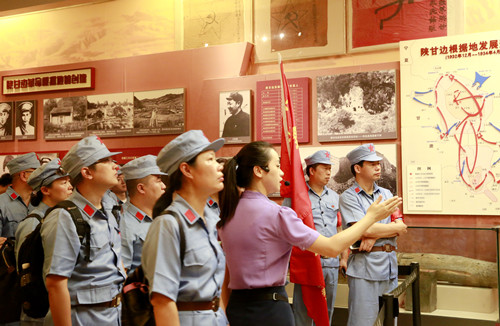 圖為黨員參觀延安革命紀(jì)念館 接下來(lái)的學(xué)習(xí)參觀行程安排得非常緊湊,大家冒酷暑頂烈日,一路顛簸,從楊家?guī)X到梁家河再到南泥灣,低矮簡(jiǎn)陋的窖洞里,一代偉人的足跡就在眼前,歷史的回音縈繞耳邊,蕩氣回腸的故事撼人心魄;革命紀(jì)念館里,面對(duì)一張張圖片和一件件歷史文物,大家駐足觀看,思緒不由自主地回到那戰(zhàn)火紛飛的抗日戰(zhàn)爭(zhēng)和解放戰(zhàn)爭(zhēng),回到艱苦樸素和激情燃燒的延安時(shí)代。在解說(shuō)員的帶領(lǐng)下,所到之處,大家認(rèn)真聽講解,看到振奮人心的畫面時(shí),大家紛紛拿出手機(jī)拍下來(lái)留作紀(jì)念。 此次延安之行,是一次生動(dòng)而深入的紅色尋根之旅,更是一次堅(jiān)定理想信念的精神之旅。收獲滿滿的黨員們掩不住內(nèi)心的喜悅,一路上交流學(xué)習(xí)體會(huì)、分享學(xué)習(xí)心得。大家紛紛表示,一定要把延安精神貫穿到日常工作中去。此次的延安之行,也將注定成為這29位黨員們一生最難忘的記憶。 鄭瑛芝