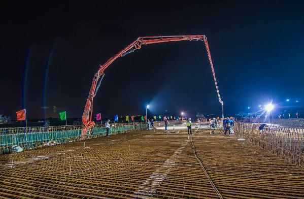 圖為4月21日凌晨,內(nèi)環(huán)路8#立交第二聯(lián)箱梁頂板澆筑場景。鐘 彪攝 8#立交工程位于黃巖區(qū)紅三村和紅四村,主線橋8#立交全長1300多米,是臺州市首座全互通四層立交。東接九峰公園,西臨黃巖主城區(qū),上跨二環(huán)東路,南北連104國道,作為內(nèi)環(huán)路唯一一個位于城鄉(xiāng)接合部關(guān)鍵節(jié)點,復(fù)雜的施工環(huán)境,繁瑣的交通組織,給工程的正常推進帶來了嚴(yán)峻的考驗。“我們?nèi)w參建人員根據(jù)現(xiàn)場情況不斷優(yōu)化方案,細(xì)化措施,狠抓落實,連續(xù)作戰(zhàn),保證每月完成既定任務(wù)指標(biāo)。”8#立交項目現(xiàn)場負(fù)責(zé)人金小琳表示。 目前,8#立交主線橋梁順利貫通,離11月11日主線通車的目標(biāo)又邁進了一大步。據(jù)臺州高速市政建設(shè)投資有限公司副總經(jīng)理何翔介紹,接下來的工作重心是在主體結(jié)構(gòu)完工的基礎(chǔ)上抓緊匝道及附屬構(gòu)筑物的施工,爭取讓臺州市民能盡早用上這條民心路。 (本文轉(zhuǎn)自《臺州日報》2017年4月22日第01版) http://paper.taizhou.com.cn/tzrb/html/2017-04/22/content_794805.htmfrom=groupmessage&isappinstalled=1
