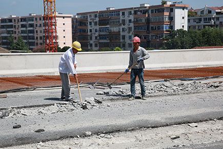 盡管天氣十分炎熱,可在整個施工段,記者沒有看到一位工人穿著短袖。“哪里敢穿短袖,日頭這么毒,一曬就脫皮了。”鐘志偉告訴記者,在這樣毒辣的太陽底下施工,必須穿長袖、長褲,盡量減少皮膚暴露在陽光下。